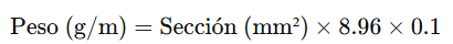 La única forma segura de verificar la sección real es medir o pesar el cobre.